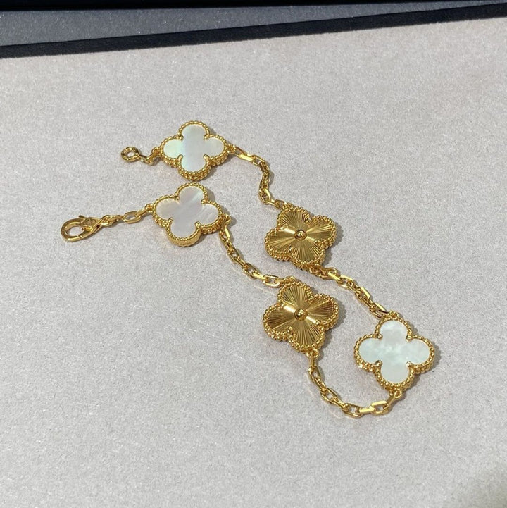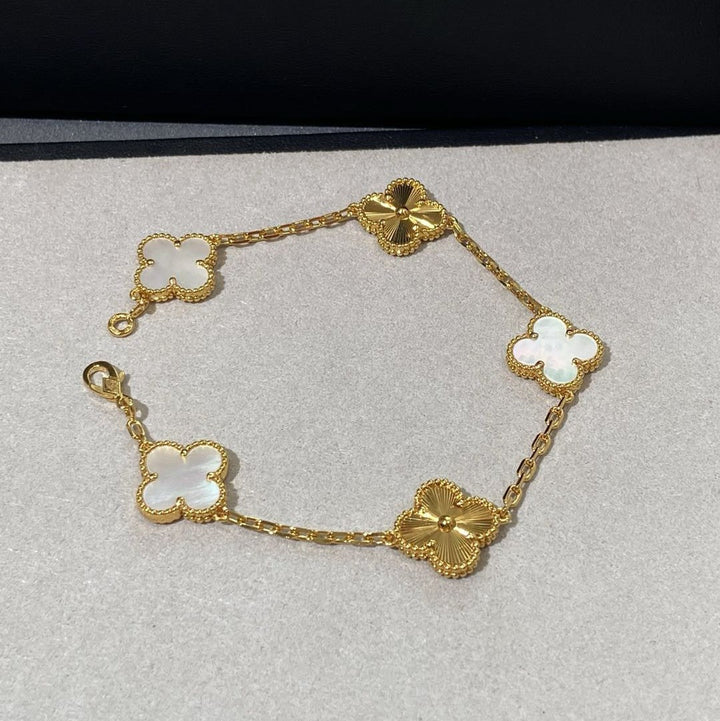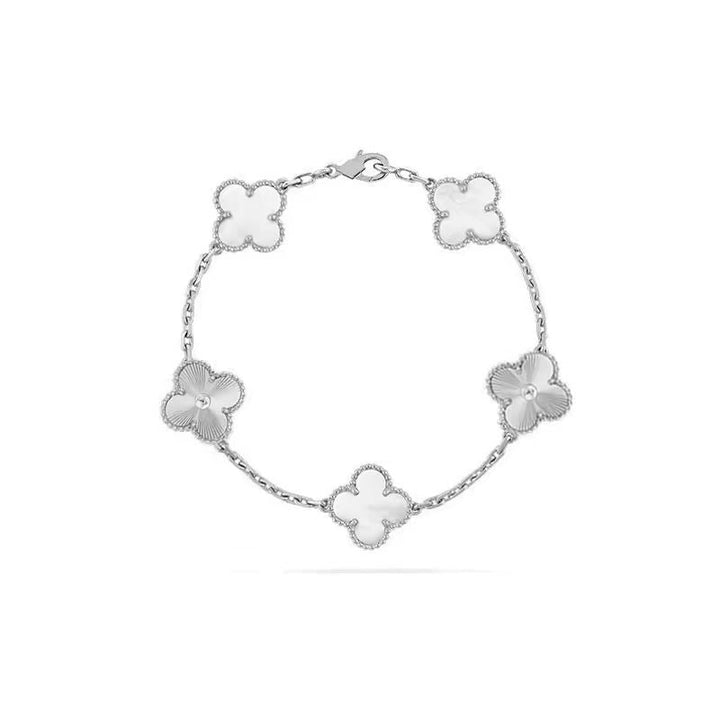 "White Mother-of-Pearl Five-Flower Bracelet - Attract Wealth, Prosperity Awaits!"